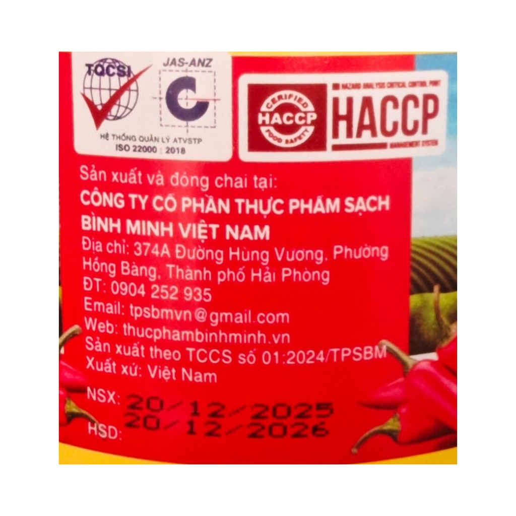 Nhà sản xuất: Công ty Cổ phần Thực phẩm Sạch Bình Minh Việt Nam.